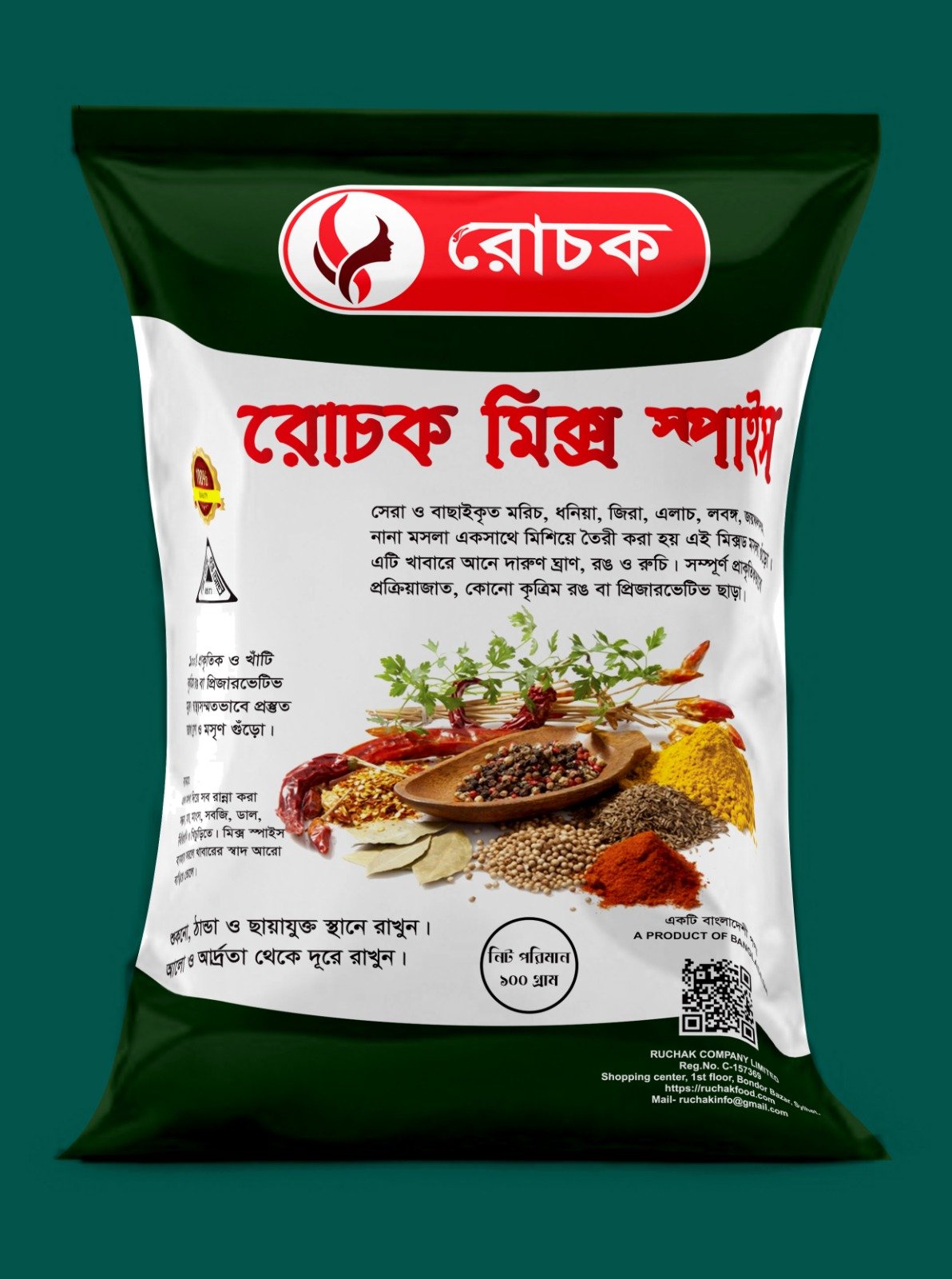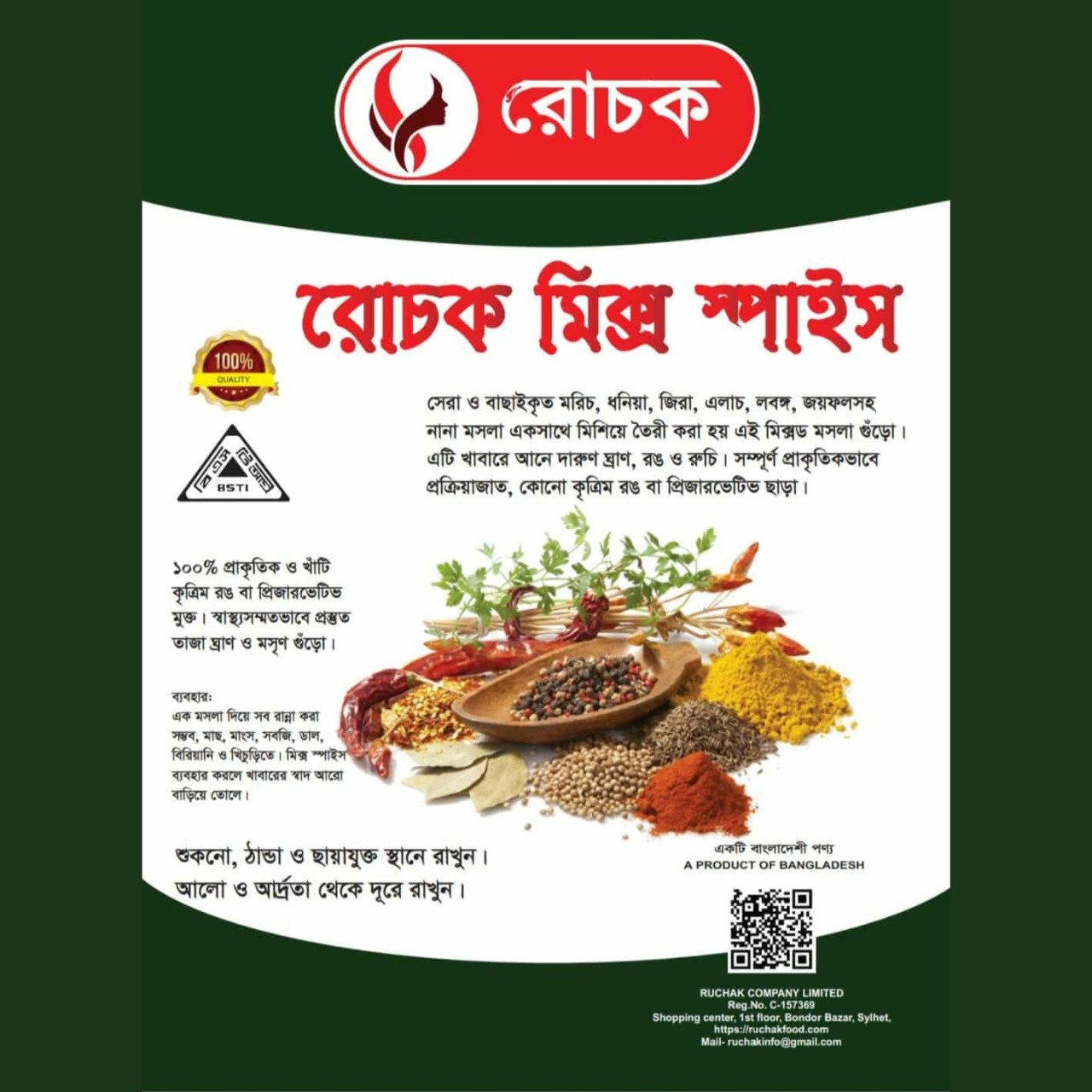 সেরা ও বাছাইকৃত মরিচ, ধনিয়া, জিরা, এলাচ, লবঙ্গ, জয়ফলসহ বহু উপকরণ দিয়ে তৈরি এই বিশেষ মিক্সড মসলা গুঁড়ো—