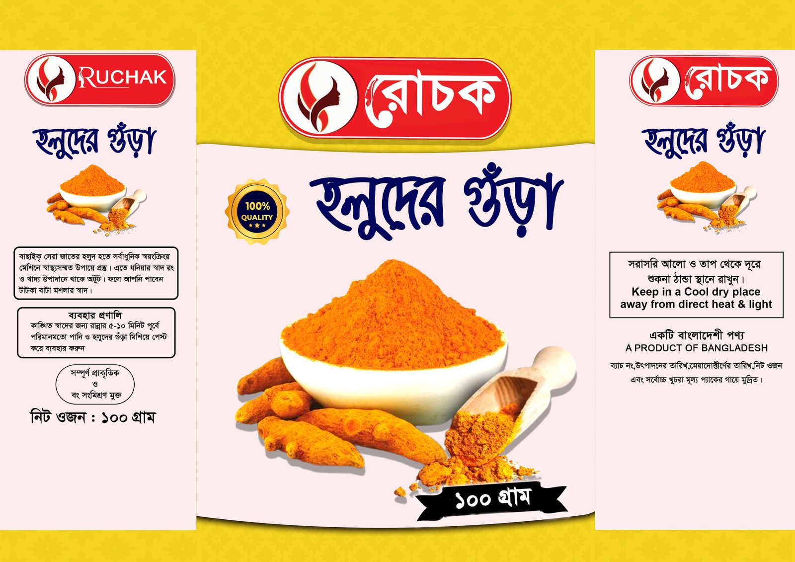 Ruchak Turmeric Powder– Add health, color, and flavor to every meal with Ruchak Turmeric Powder, made from premium-quality turmeric roots sourced from trusted farms. Known for its rich color and natural curcumin content, Ruchak gives your dishes that authentic golden glow and wholesome taste.